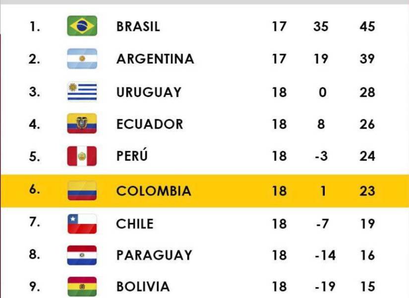 Ecuador, ya clasificada, salvó los muebles al final de su partido ante Argentina al igualar en el minuto 93 1-1 con gol de Enner Valencia. Culminó en la cuarta casilla con 26 puntos en 18 partidos.