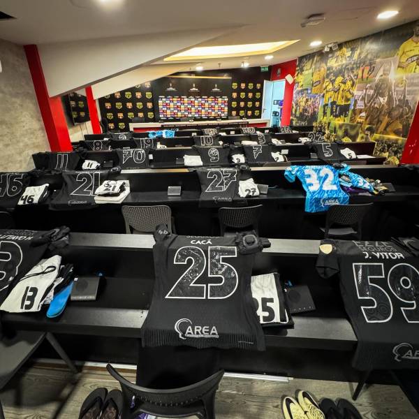 Por motivo de las fuertes lluvias en Guayaquil, el vestuario de suplentes no está apto para ser utilizado y Barcelona SC les improvisó una zona para cambiarse.