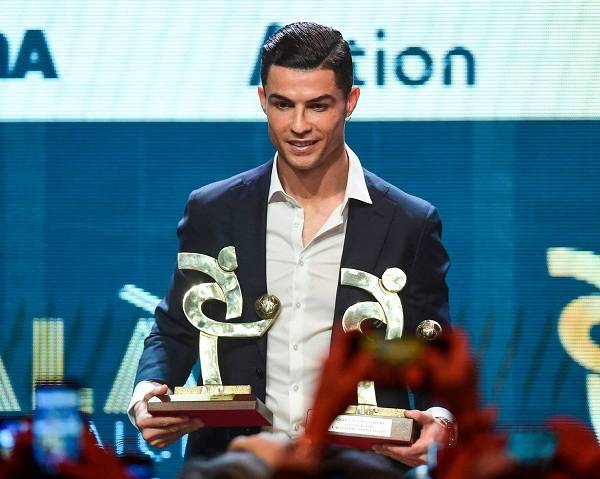 Cristiano recibiendo sus premios.