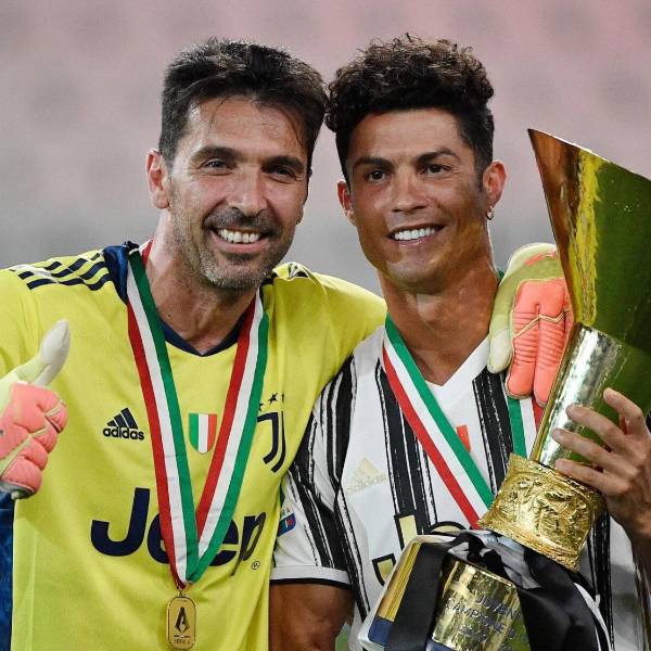 Gianluigi Buffon y Cristiano Ronaldo celebran un título con la Juventus ( )