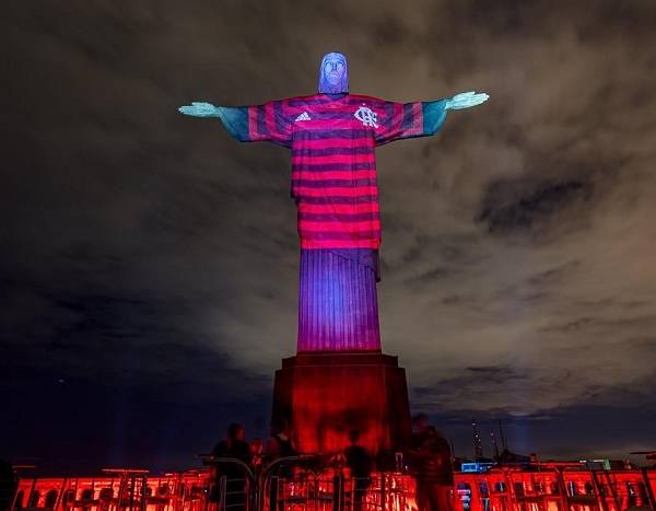 Gracias a una mezcla de luces, la sudadera del Mengao se proyectó en la estatua del Cristo Redentor, el principal punto turístico de Río de Janeiro.