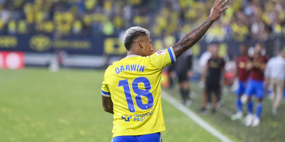 El delantero del Cádiz CF Darwin Machís, delantero del Cádiz CF, enfrenta 18 meses de cárcel.( )