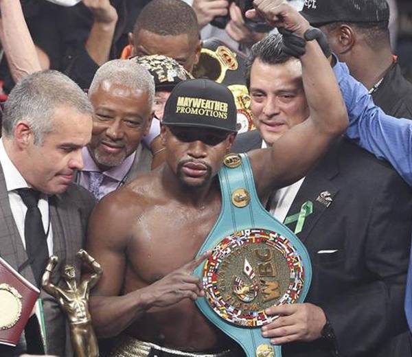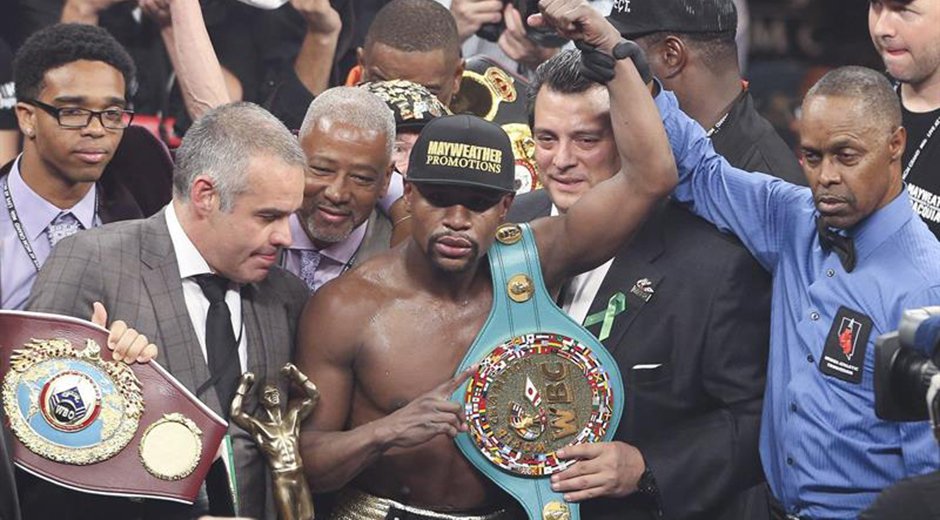 El estadounidense incluso dijo inmediatamente después de la pelea que renunciaría a todos los títulos para dar oportunidad a que otros púgiles pudieran ser campeones mundiales. Sin embargo, Mayweather no ha renunciado a ninguno de sus tres títulos de peso welter ni a los dos de peso mediano junior.