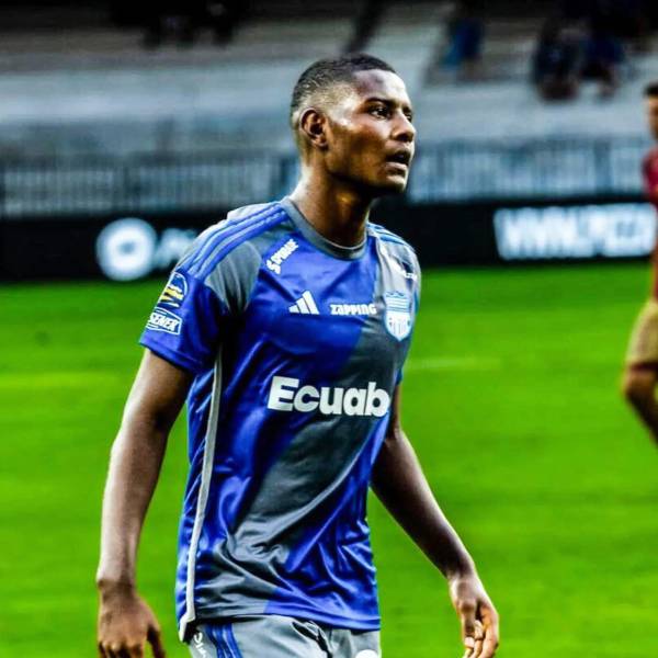 Una de las sorpresas de Emelec en el 2024, el joven defensa de 19 años, Diogo Bagüí, fue uno de los elementos más destacados en la muralla eléctrica.