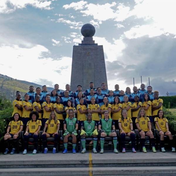 Las jugadoras de la selección femenina de Ecuador en el monumento de la Mitad del Mundo( )
