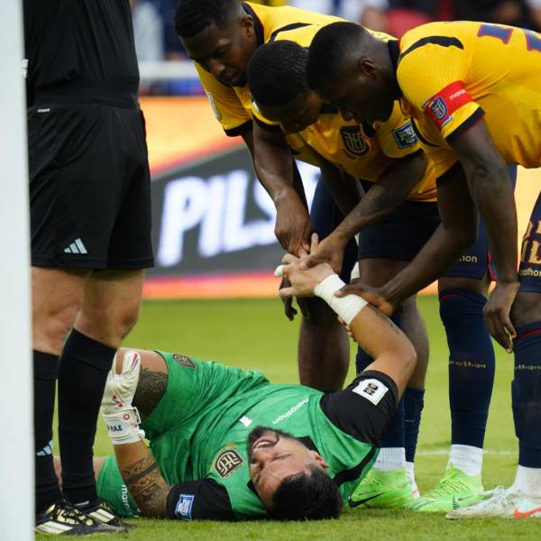 Hernán Galíndez, arquero titular de la selección de Ecuador, pasó un gran susto que se transmitió hasta los hinchas tricolores al ver que uno de sus dedos se dobló cuando asentó su mano en el gramado de juego, tras una atajada.
