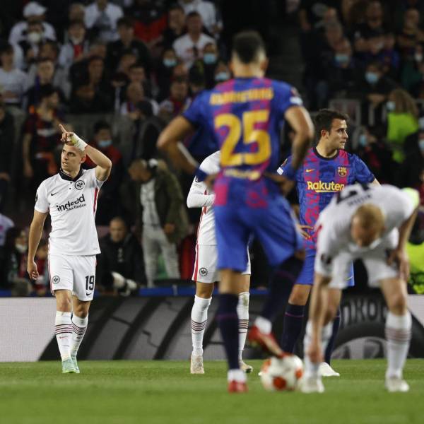 El Barça, desnortado y sin continuidad en su juego, seguía sin derribar el muro alemán. Xavi intentó revolucionar el encuentro dando entrada a Adama Traoré y a Sergiño Dest. Pero el Eintracht siguió con su plan: ahogaba a los extremos y taponaba la sala de máquinas, con un Busquets desparecido, a la espera de dar otro picotazo.