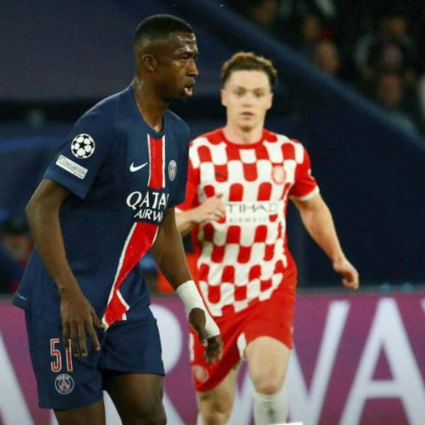 PSG: Donnarumma; Hakimi, Marquinhos, Pacho, Lucas Hernandez; Neves, Vitinha, Fabian Ruiz; Doué, Dembélé y Barcola