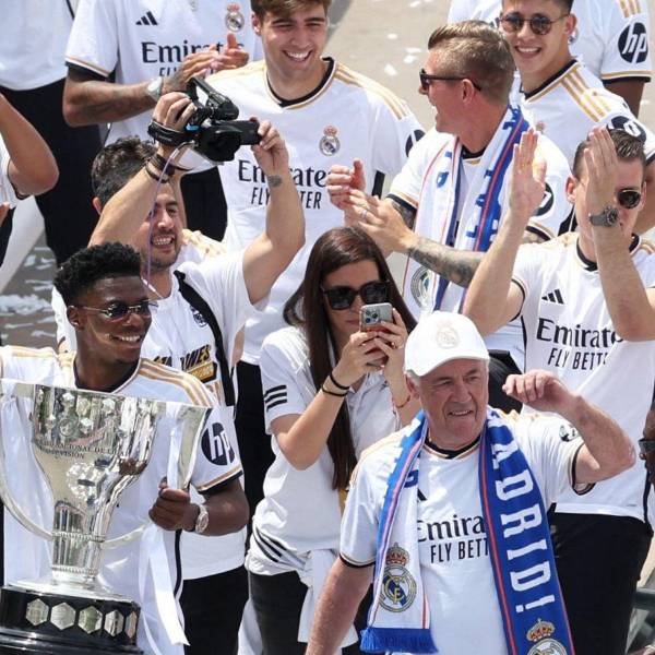 “El loco está aquí. Buenos días a todos. Muchas gracias por venir. A disfrutar de este día y a por la decimoquinta”, bromeó un Rüdiger que, por su actitud desenfrenada, es uno de los más queridos por la afición madridista.