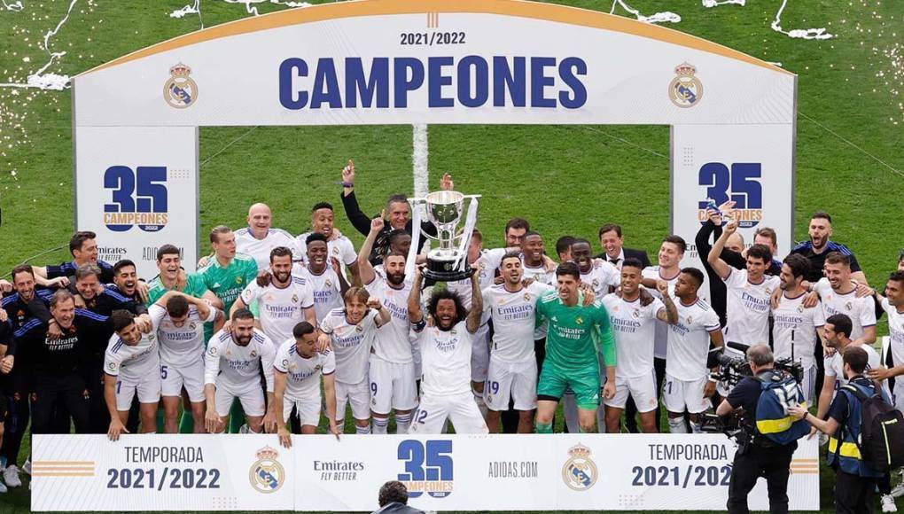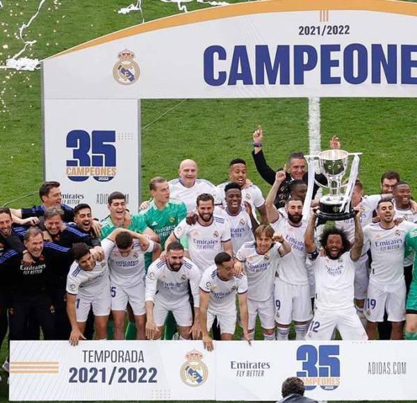 El Real Madrid certificó este sábado, con cuatro jornadas aún por delante y gracias a su triunfo frente al Espanyol (4-0), la consecución del 35º título de Liga del equipo presidido por Florentino Pérez.