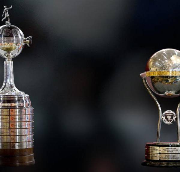 Los trofeos de la Copa Libertadores y Copa Sudamericana.( )
