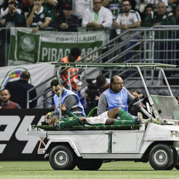 El atacante fue recogido en camilla y trasladado en un carrito de asistencia médica hasta el banquillo local, en el momento en que el Palmeiras ganaba 2-0.