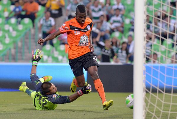 El ecuatoriano Enner Valencia anotó un doblete esta noche en la victoria del Pachuca 3-2 sobre el León en la primera final del fútbol mexicano.