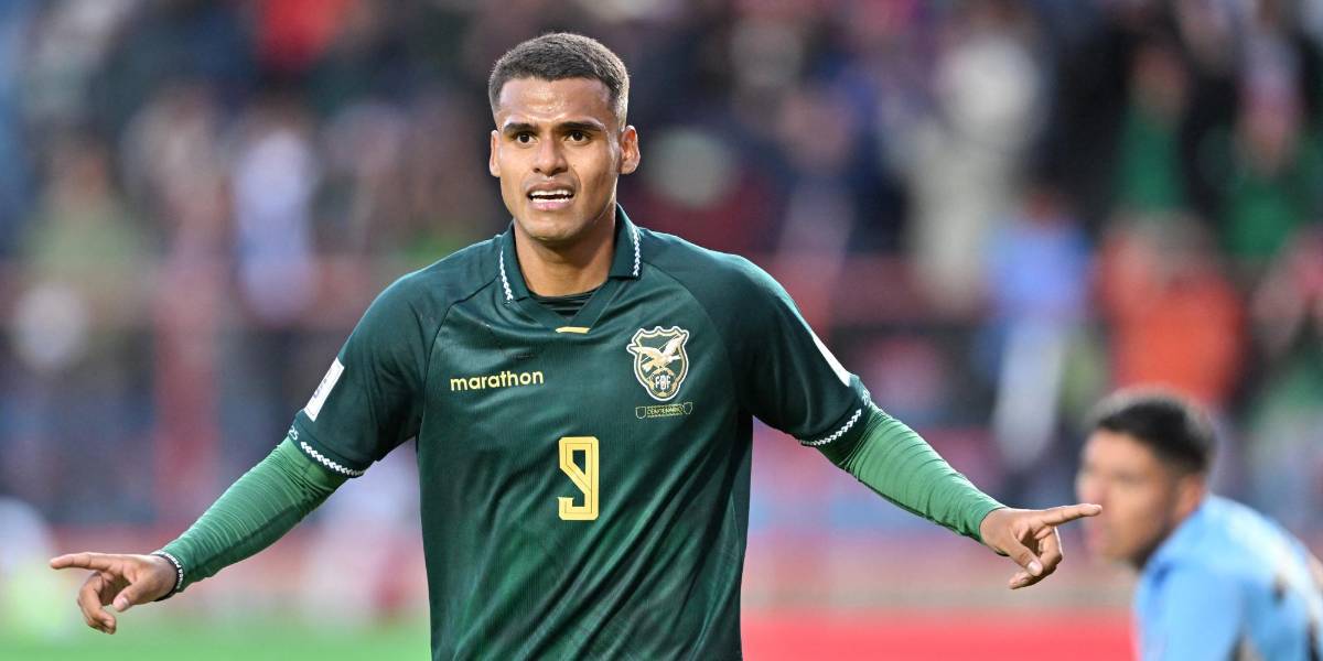 El delantero de Bolivia, Enzo Monteiro, celebra su gol contra Chile por las Eliminatorias Sudamericanas ( )