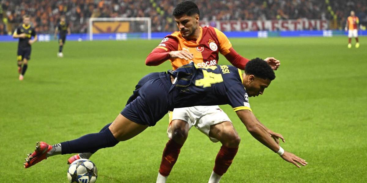 Eren Elmali (rojo y amarillo), jugador del Galatasaray de Turquía, durante un partido de la Champions League ( )