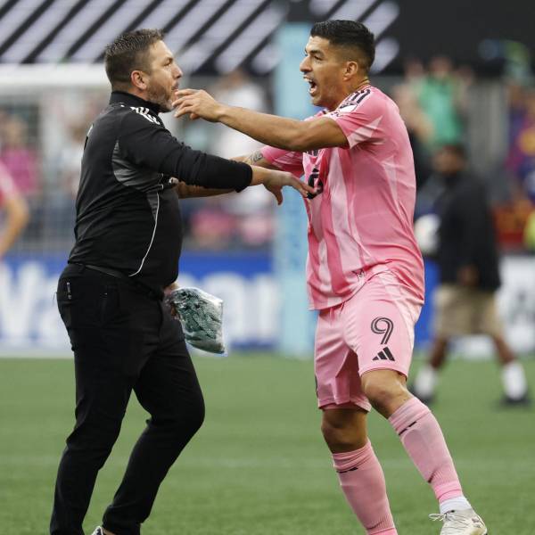 El uruguayo Luis Suárez estuvo en el centro de la monumental riña desatada la noche del domingo tras la derrota de su Inter Miami 3-0 frente al Seattle Sounders en la final de la Leagues Cup, durante la cual pareció escupir a un miembro del cuerpo técnico rival.