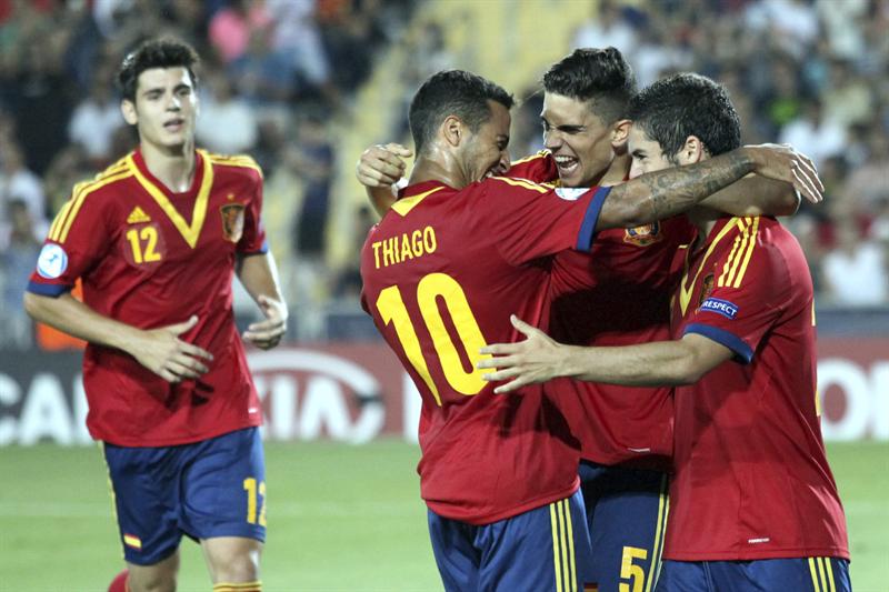 La estrella del partido fue el barcelonista Thiago Alcántara, autor de un triplete, el primero en una final sub'21 en su actual formato.