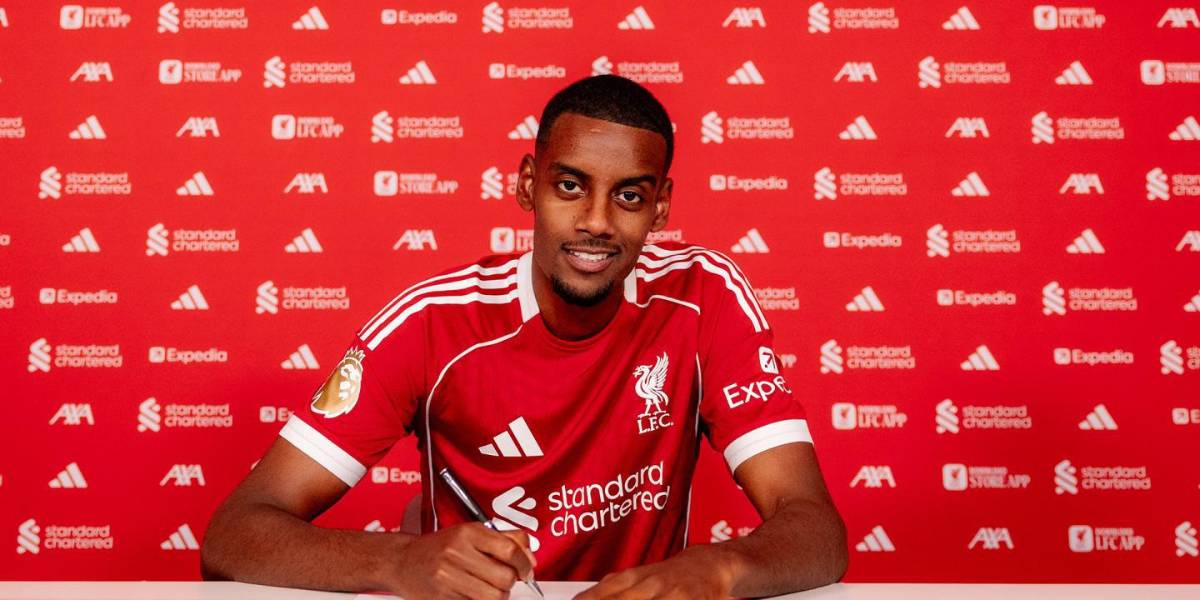 El sueco Alexander Isak en su firma de contrato con el Liverpool( )