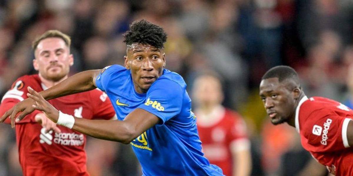 Kevin Rodríguez, delantero ecuatoriano, estuvo en la victoria del Union Saint Gilloise ante Liverpool.( )