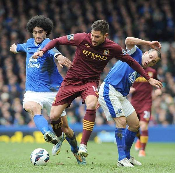 Mejor organizado, y ante un equipo que perdía el balón con cierta facilidad, el Everton ejercía una presión en el medio campo que impedía trabajar a los medios "citizens" y acorralaba a los de Mancini en su propio terreno.