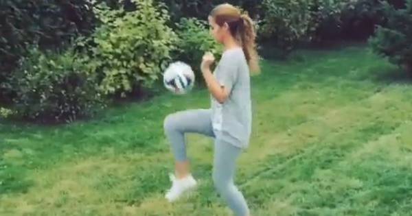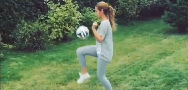 Tamara Gorro pareja del argentino, Ezequiel Garay, mostró su destreza con el balón.