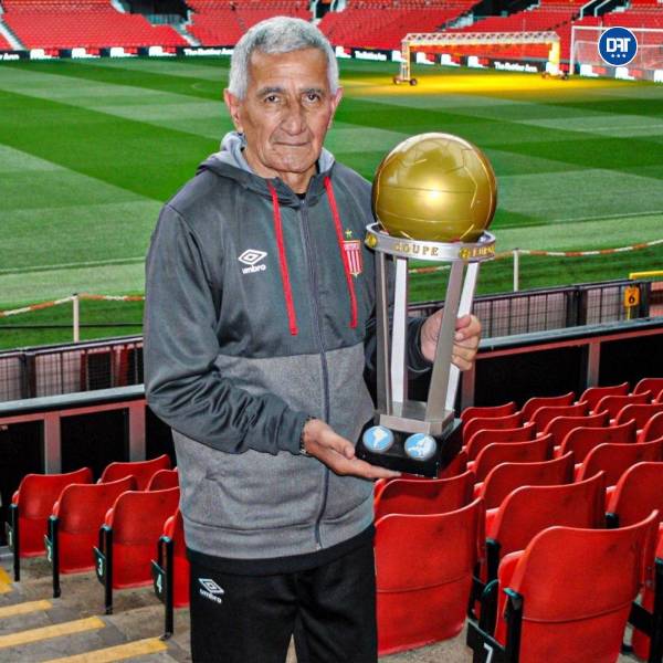 Juan Ramón Verón posando para una foto en el estadio con trofeo en mano.( )