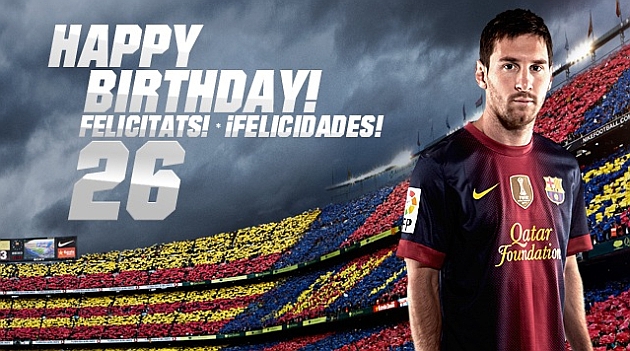BARCELONA - España.- Lionel Messi es felicitado por su club por su cumpleaños 26. Fuente FCBarcelona.com