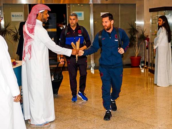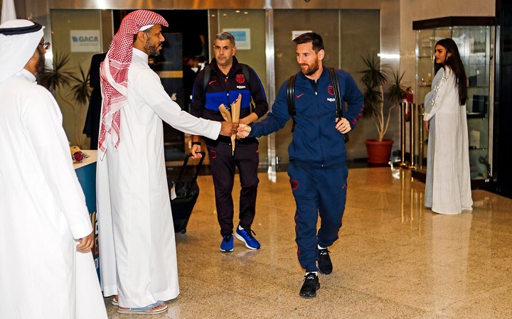 El club catalán agradeció el recibimiento en su llegada a la ciudad de Yeda en las redes sociales. La delegación se instaló en un hotel a la espera del partido del próximo jueves ante Atlético de Madrid en la primera semifinal y mañana realizará un entrenamiento.