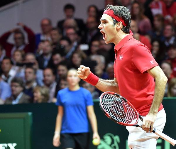 Apenas pudo entrenarse Federer, acostumbrarse a la tierra batida bajo techo del estadio Pierre Mauroy de Lille que habían elegido los franceses y eso se notó en su primer individual, que perdió ante un encendido Gael Monfils (6-1, 6-4, 6-3). Antes, Wawrinka había adelantado a Suiza al derrotar a Tsonga (6-1, 3-6, 6-3, 6-2).