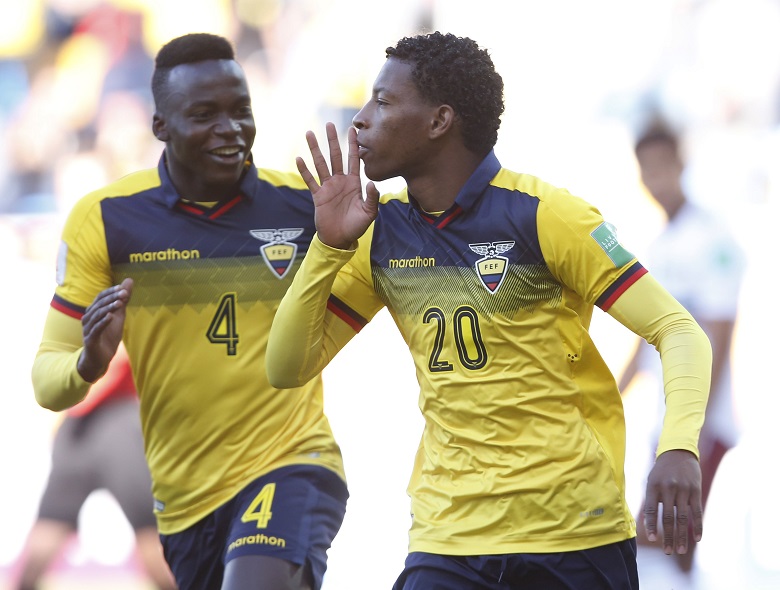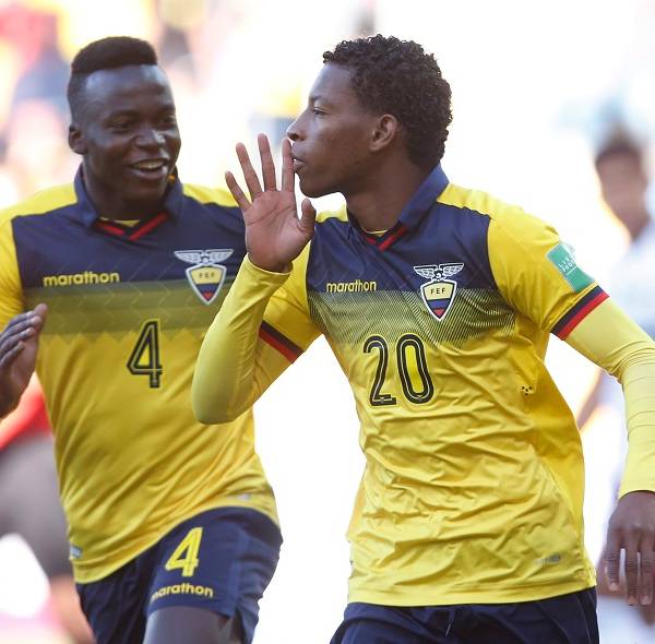 Gonzalo Plata (20) celebra un tanto con Ecuador.