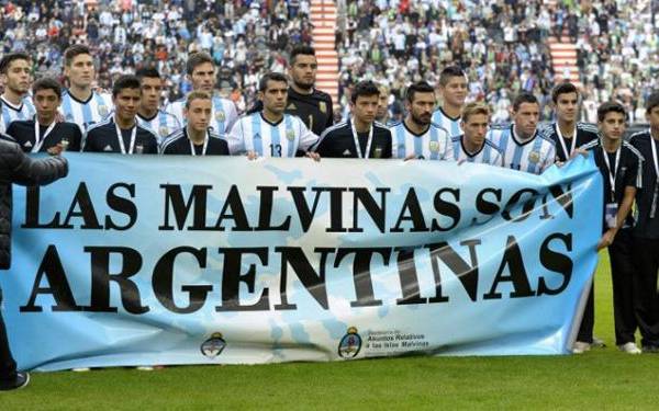 En ese partido, y según la FIFA, "ciertos miembros de la selección argentina sostuvieron una pancarta en la que se podía leer 'Las Malvinas son argentinas'.