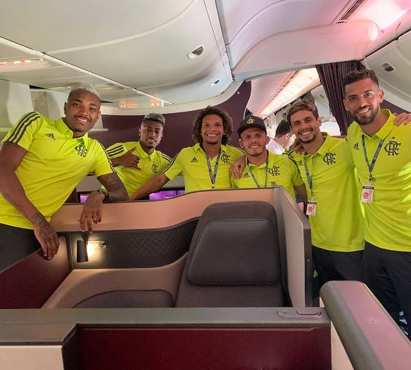 Jugadores de Flamengo ya en el avión. Twitter: Flamengo.