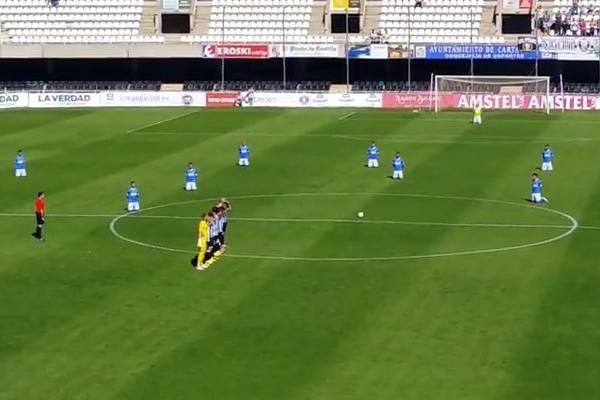 En el fútbol español también existe crisis económica y quedó evidenciado en la protesta de los jugadores en el partido entre Cartagena y Lucena, que se negaron a tocar el balón y prefirieron arrodillarse en el campo y dar la espalda a los directivos.