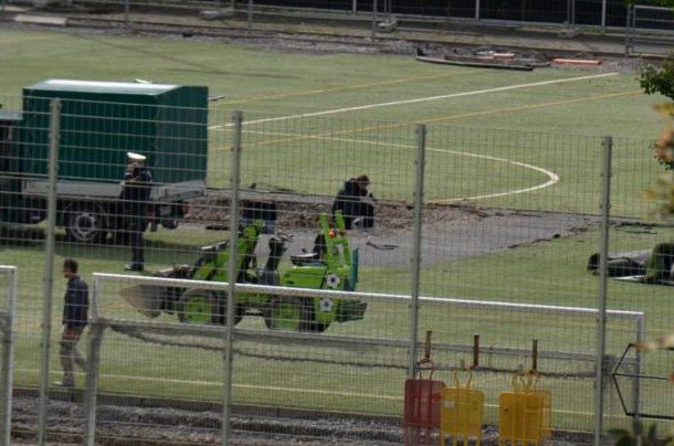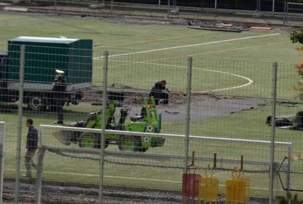El artefacto explosivo estaba enterrado a pocos metros del campo de juego.
