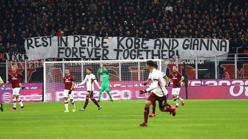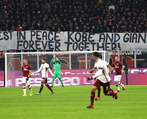 En una de las cabeceras del mítico San Siro, los tifosi mostraron una bandera con la frase "descansen en paz Kobe y Gianna, por siempre juntos". La misma apareció durante el minuto 24 de juego en alusión al número del histórico jugador de Los Ángeles Lakers.
