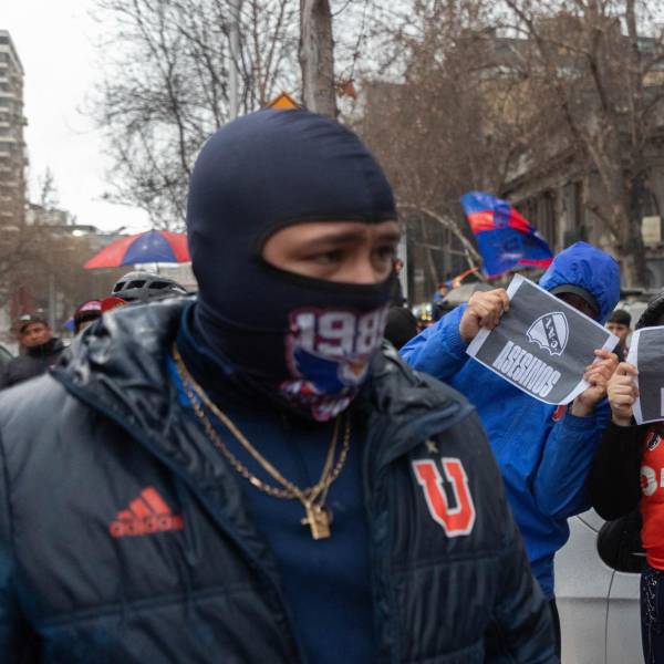 Hinchas de Universidad de Chile protestan contra Independiente de Avellaneda ( )