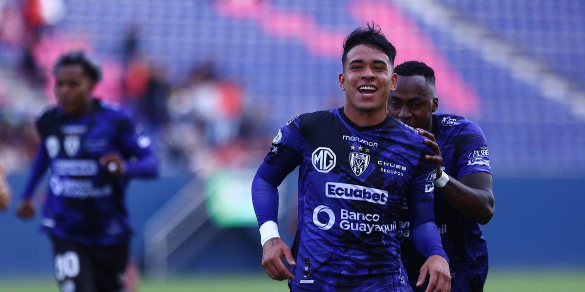 El jugador de IDV, Kendry Páez, celebra su gol contra Deportivo Cuenca ( )
