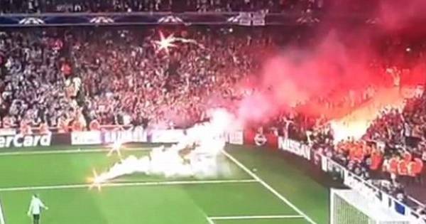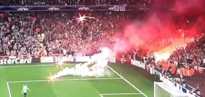 Los objetos flamígeros lanzados desde las gradas de los aficionados del Galatasaray sobre el césped de los Gunners obligaron al árbitro a parar el partido unos instantes.