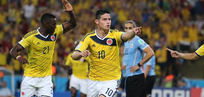 El colombiano anotó de volea ante Uruguay en el Mundial.