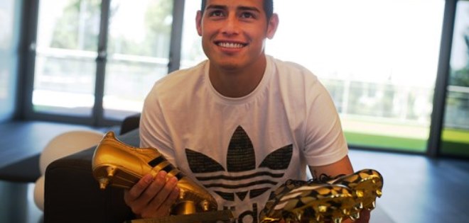 El jugador colombiano del Real Madrid James Rodríguez ha recibido esta mañana la Bota de Oro como máximo goleador del pasado Mundial de Brasil.