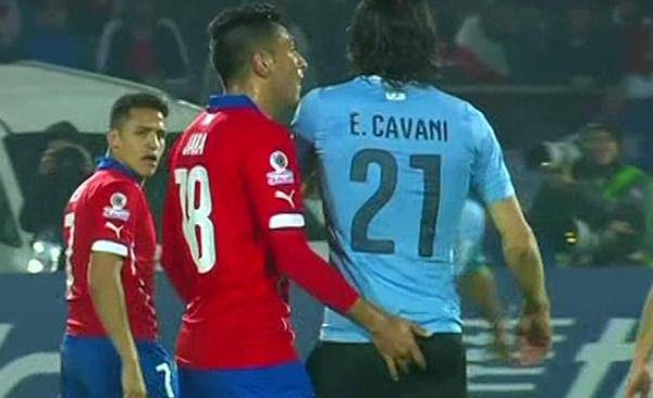 En los cuartos de final de la pasada Copa América, Jara le introdujo un dedo en el trasero a Cavani, que reaccionó con un manotazo que fue visto por el juez, por lo que fue expulsado en el partido que terminó con una victoria de Chile por 1-0.