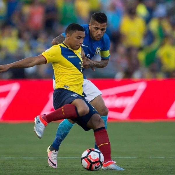 Jefferson Montero ante la marca de Dani Alves en un partido por la Copa América( )