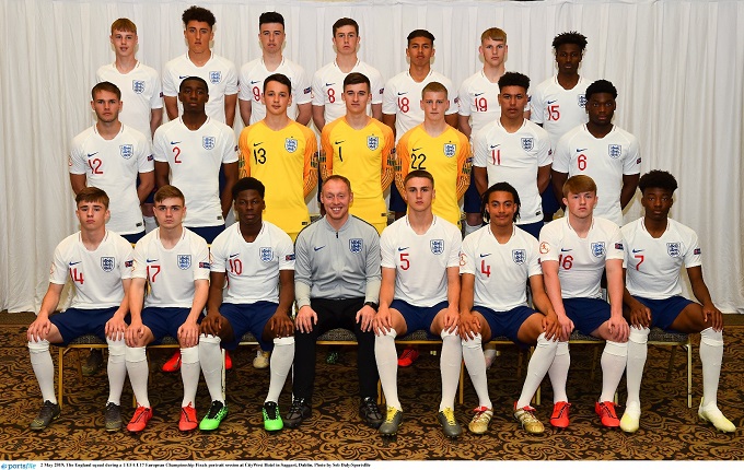 Sarmiento, quien tiene 16 años de edad, jugará la Eurocopa con Inglaterra Sub-17, por lo que posó con la camiseta de dicho país.