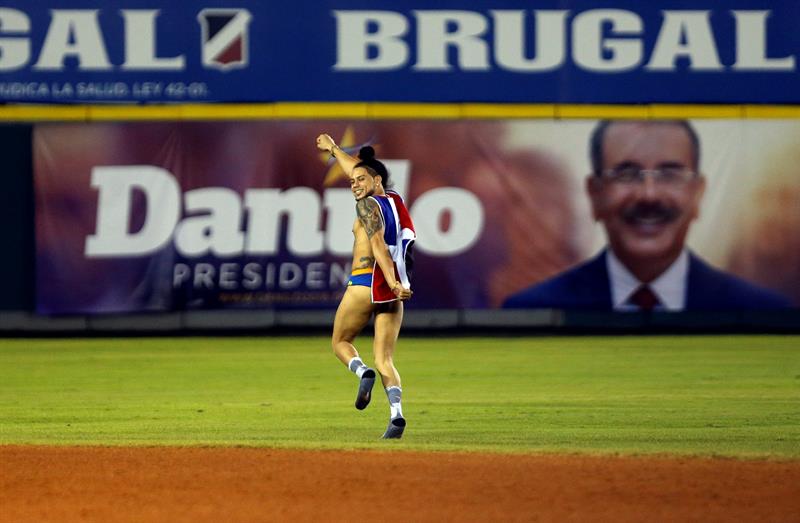 Un joven dominicano ingresó al campo de juego y corrió semidesnudo durante el juego entre los Tigres de Aragua, de Venezuela, y los Leones del Escogido de República Dominicana, en el segundo día de la Serie del Caribe 2016, en el estadio Quisqueya en Santo Domingo.