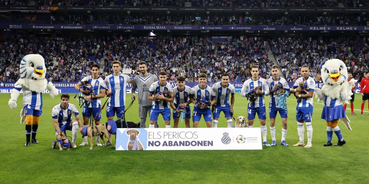 Jugadores del Espanyol salieron al campo de juego con un perro para fomentar la adopción animal