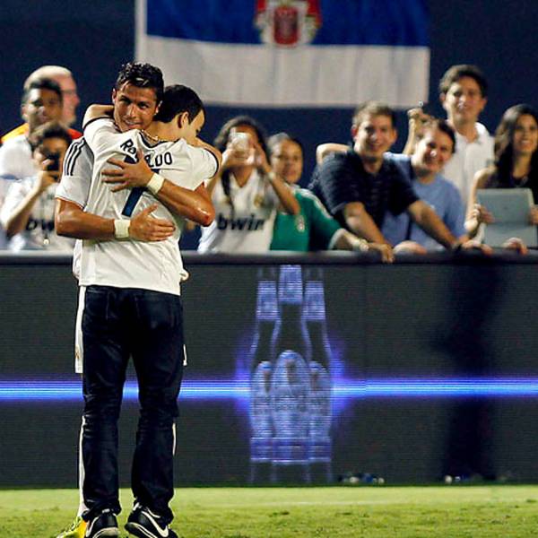 Ronald Gjoka abrazó a Ronaldo en el partido entre Real Madrid y Chelsea jugado el 7 de agosto.