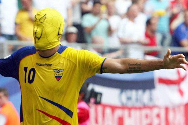 La FIFA en sus redes sociales publicó este gol de Kaviedes, que lo festejó con una mascará en honor Otilino Tenorio, quien falleció en un accidente de tránsito en el 2005.