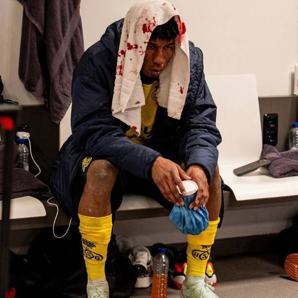 Durante el cruce entre el Union Saint Gilloise y el Ajax por la Europa League, Kevin Rodríguez sufrió un duro golpe del arquero rival dentro del área y le fracturó la nariz.