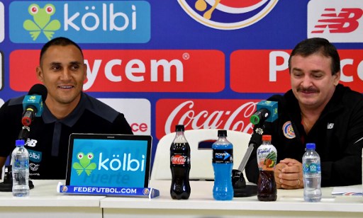 Keylor Navas (i.) no pudo asistir a la presentación de la WWE en Costa Rica por estar con la selección. Foto: AFP