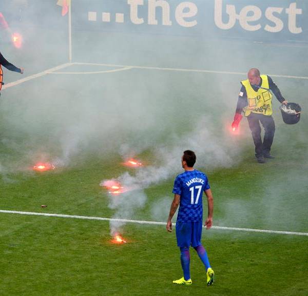 Croacia vencía 2-1 a República Checa cuando los aficionados empezaron a lanzar bengalas.
